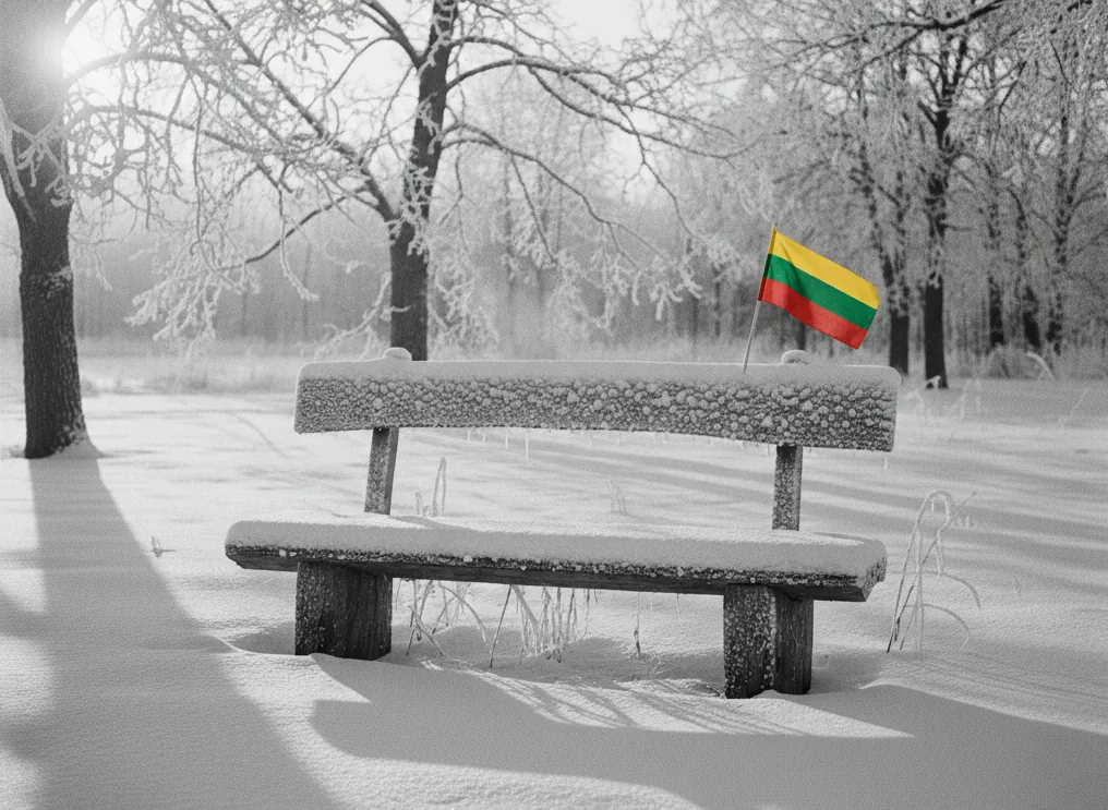 Iškėliau vėliavą, nusiėmiau pirštines, pajutau, kaip pirštai tirpsta, ir prisėdau ant suoliuko. Ne todėl, kad norėjau pasėdėti. Todėl, kad kojos pasakė: arba sėdi, arba griūni. Pasirinkau oriai.